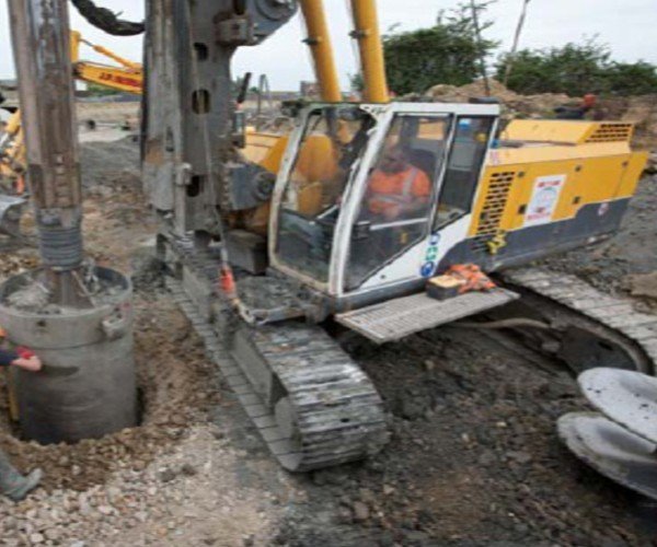 Rotary bored piles are constructed by rotating a casing into the ground to support poor or granular ground.